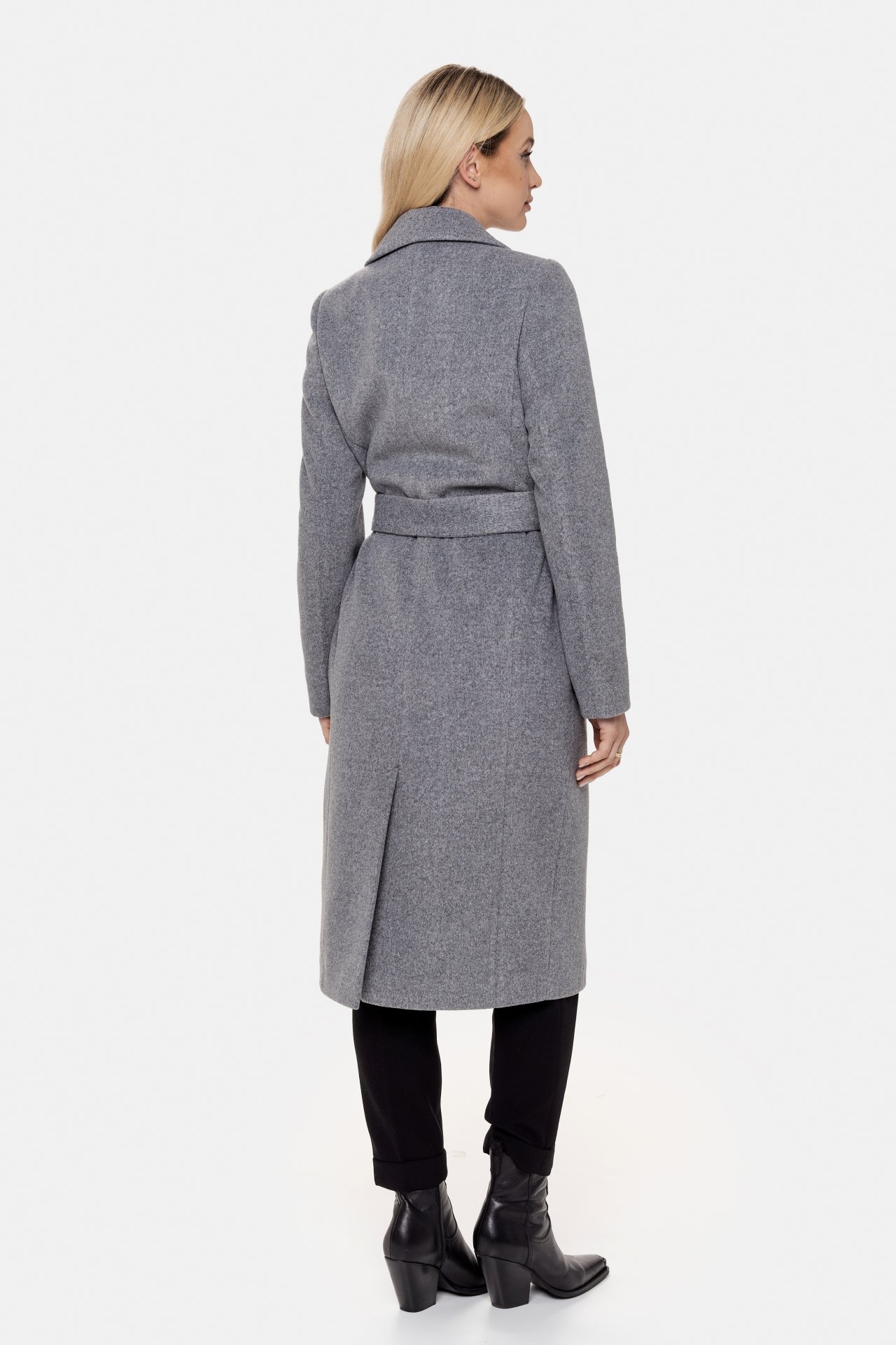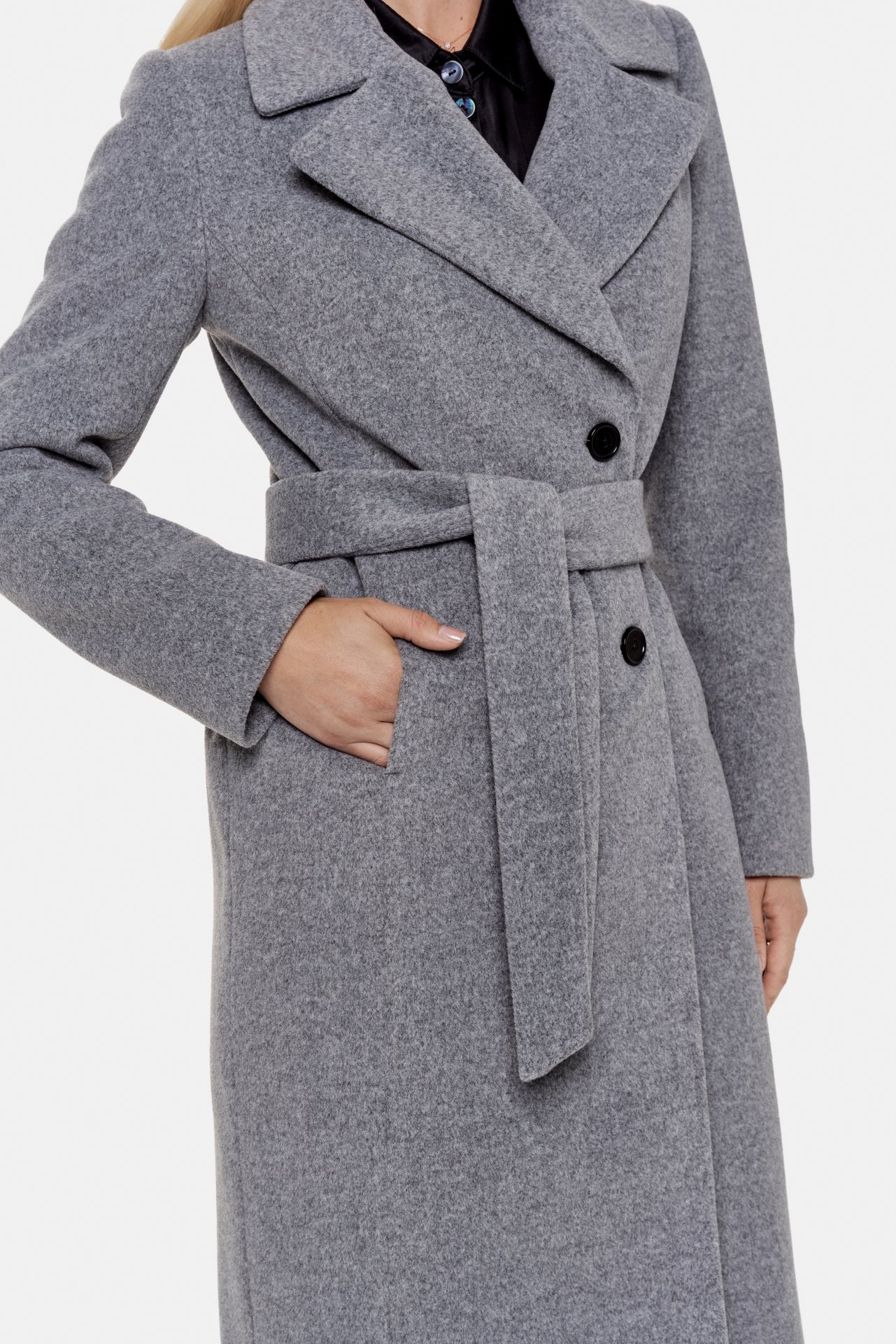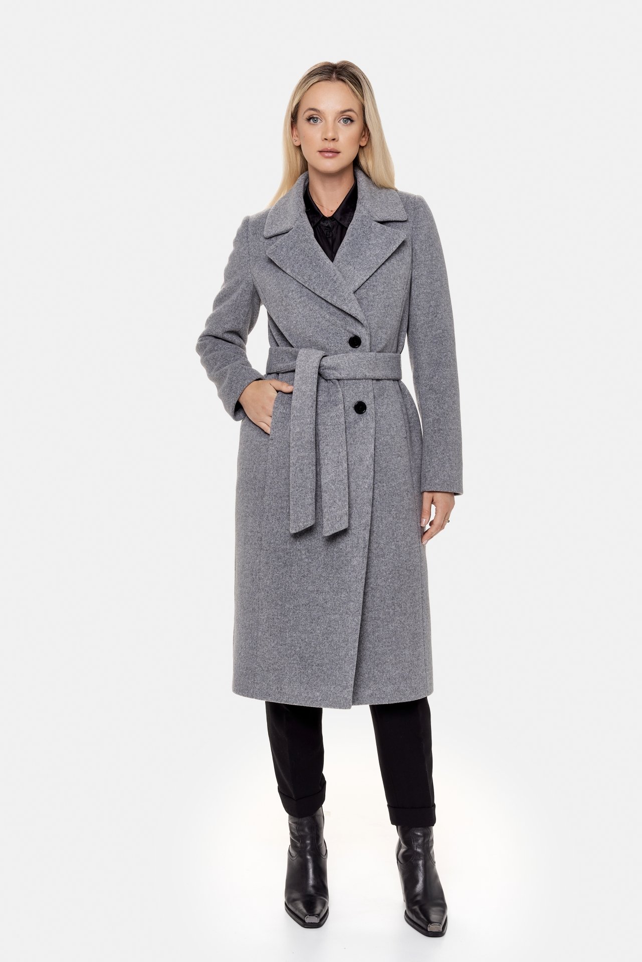 Długi, dopasowany płaszcz. Zapinany na guziki i regulowany w talii paskiem. Po bokach kieszenie. Z tyłu rozcięcie. Ocieplany, wykończony podszewką. Długość płaszcza 117 cm.