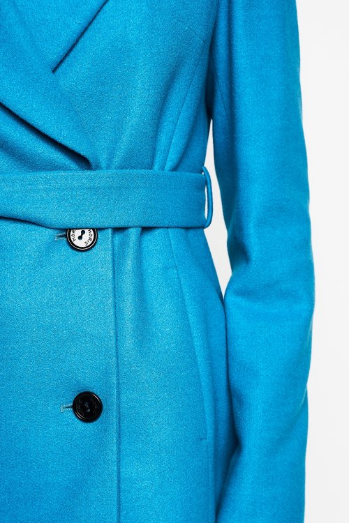Płaszcz przejściowy Gabi, idealny na wiosnę i jesień. Zapinany na dwa guziki i wiązany w talii paskiem. Z tyłu płaszcza rozcięcie, a po bokach kryte kieszenie.